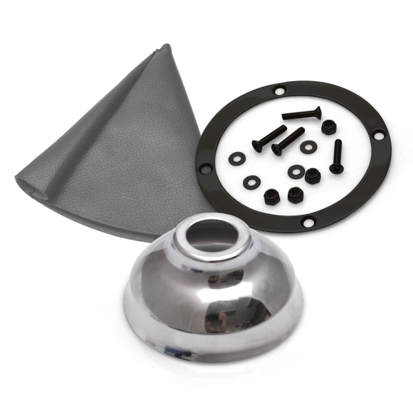 American Shifter’s boot kits include all you need to dress up your shifter or emergency brake handle. Each kit includes a real Naugahyde boot, trim ring, chrome cap and mounting hardware.