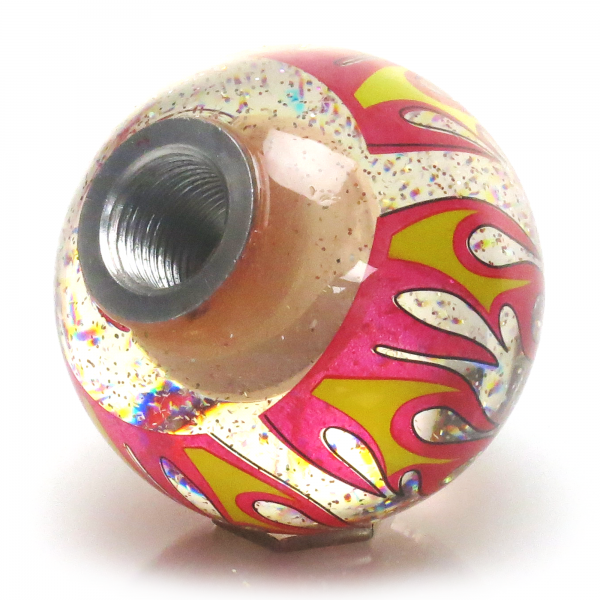 These sizzling Custom Shift Knobs have all the fun of the classic Custom Shift Knob with an added flame twist. The Flame Series comes in a variety of bright colors, are 2 1⁄4 inches in diameter and include a threaded shift adapter and detailed instructions for easy installation.